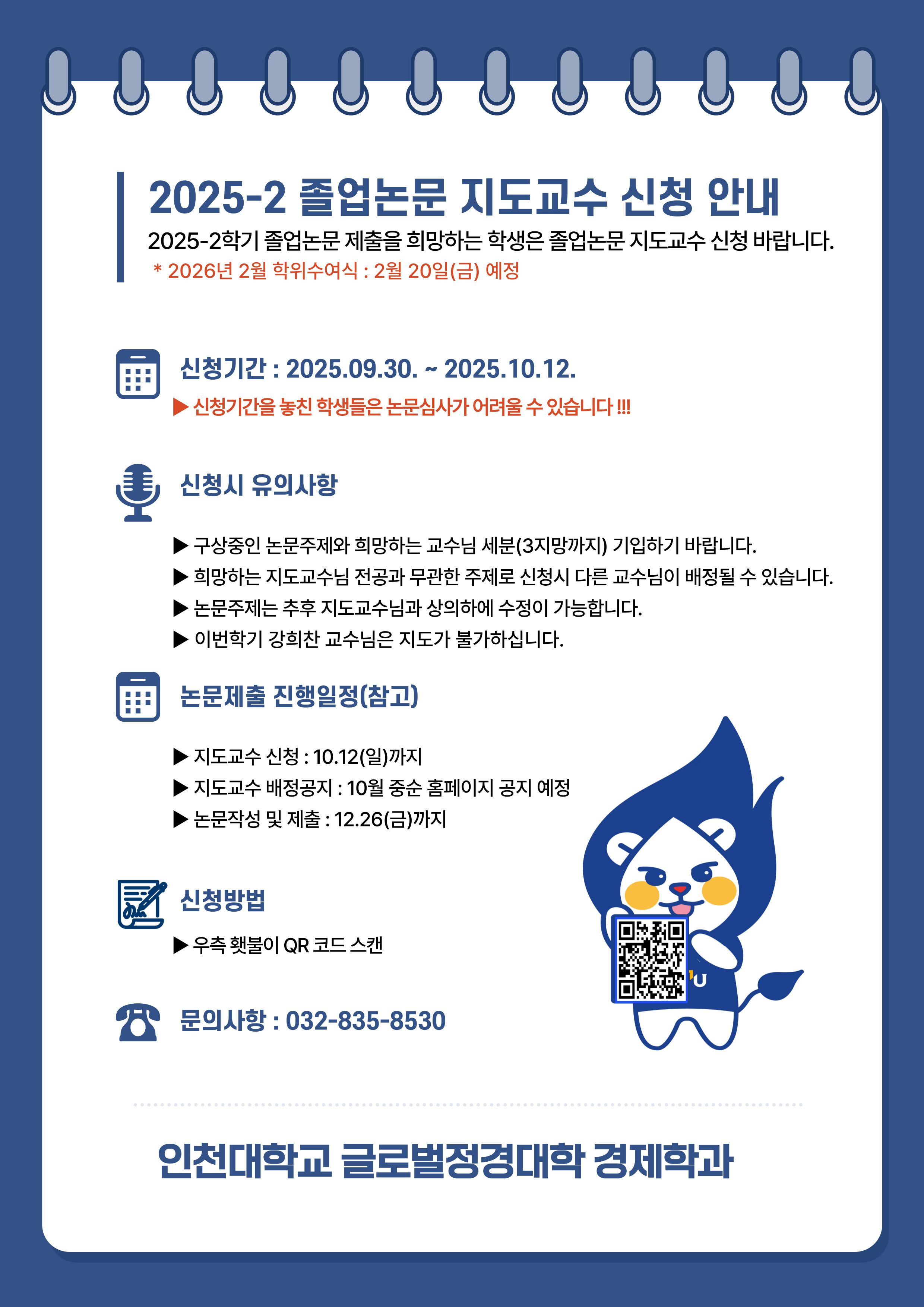 [졸업공지] 2025-2 졸업논문 지도교수 신청 안내(~10/12 까지)
