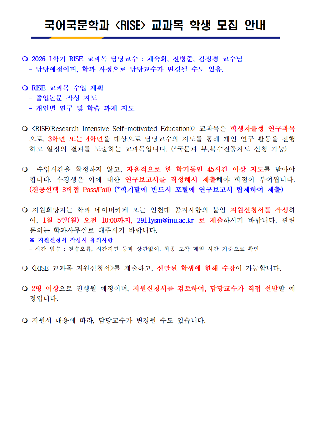 [국어국문] 2026-1 RISE (라이즈) 교과목 학생 모집
